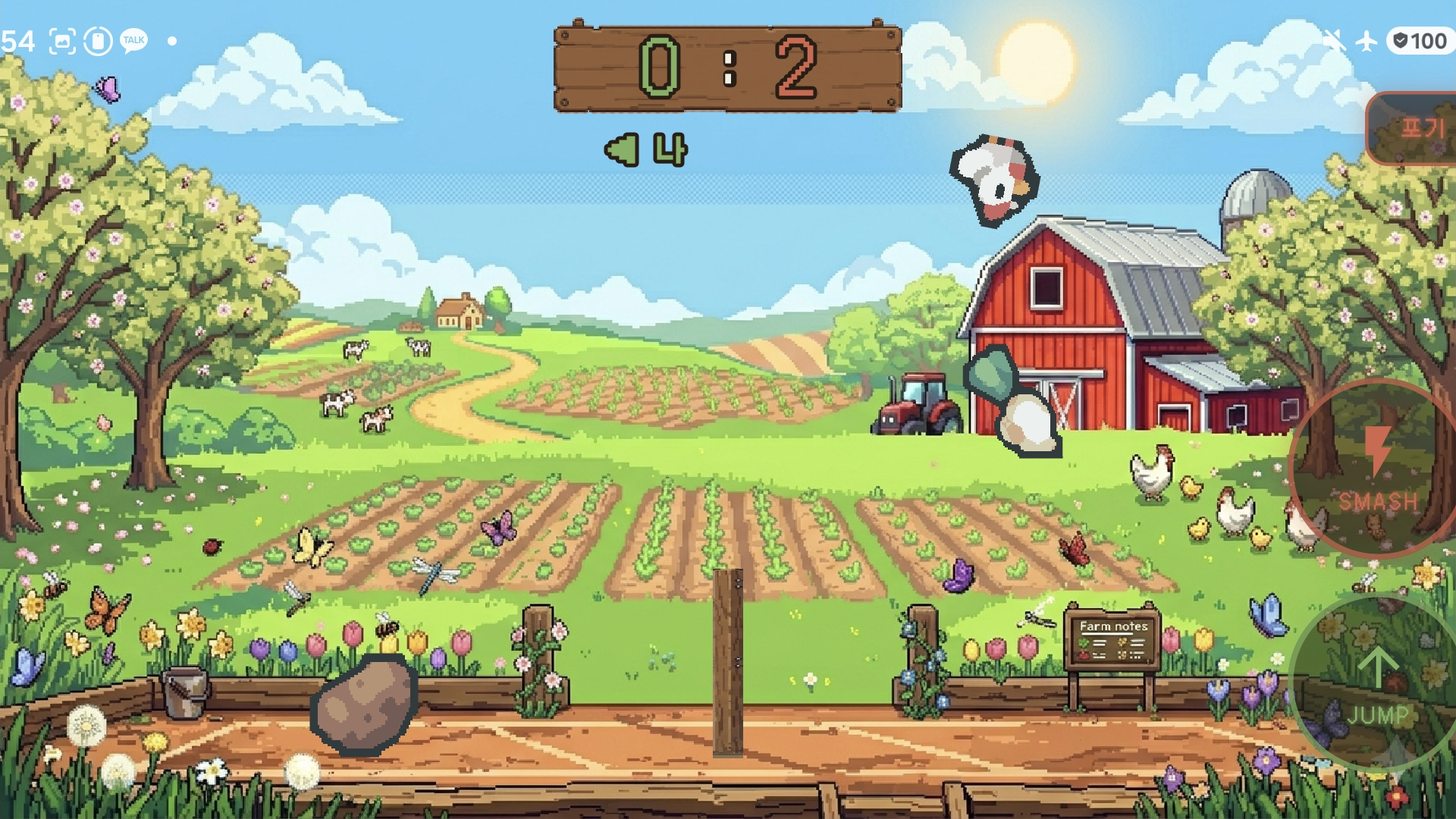 1988년 감자배구의 경쾌한 랠리 위에, 농장 친구들을 얹었습니다. 작물을 심고 키워서 나만의 선수·공·치어리더를 모으는 실시간 1:1 모바일 배구.